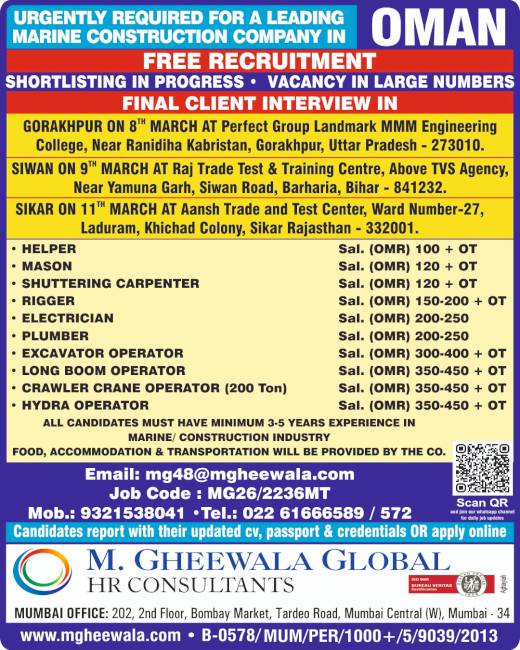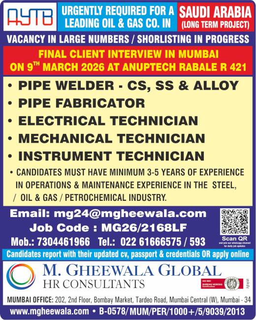 It was a very good experience with M. Gheewala Global during the recruitment process. The arrangements for interviews were great; candidates had good experience and were Gulf returnees, The coordinating staff were respecting us and were supporting our team to get skilled technicians in all trades.