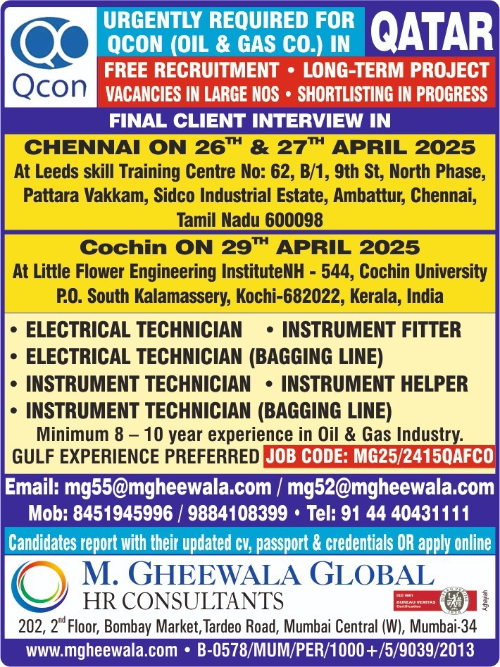Follow M. Gheewala Global HR Consultants for Latest Vacancies
