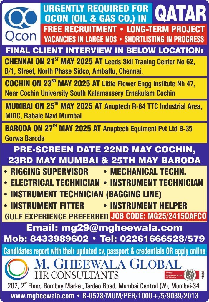 Follow M. Gheewala Global HR Consultants for Latest Vacancies