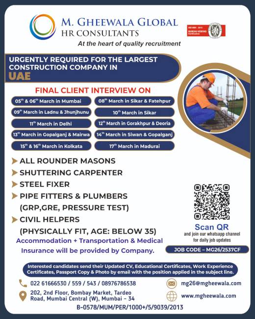 It was a very good experience with M. Gheewala Global during the recruitment process. The arrangements for interviews were great; candidates had good experience and were Gulf returnees, The coordinating staff were respecting us and were supporting our team to get skilled technicians in all trades.