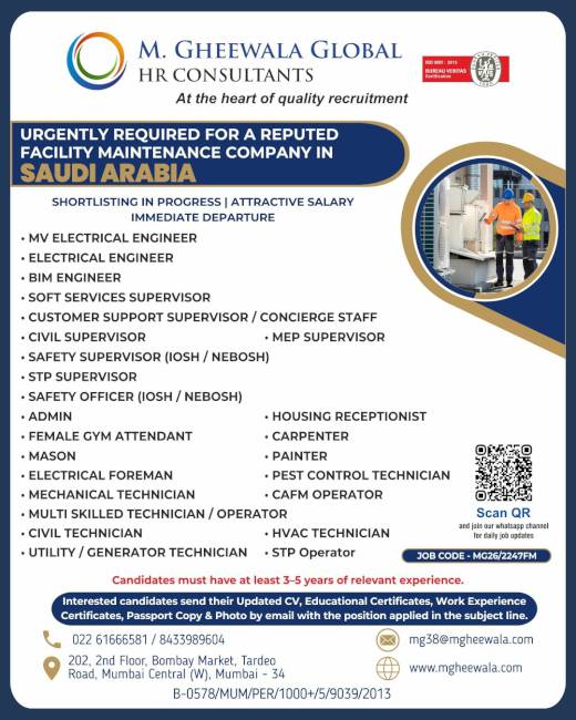It was a very good experience with M. Gheewala Global during the recruitment process. The arrangements for interviews were great; candidates had good experience and were Gulf returnees, The coordinating staff were respecting us and were supporting our team to get skilled technicians in all trades.