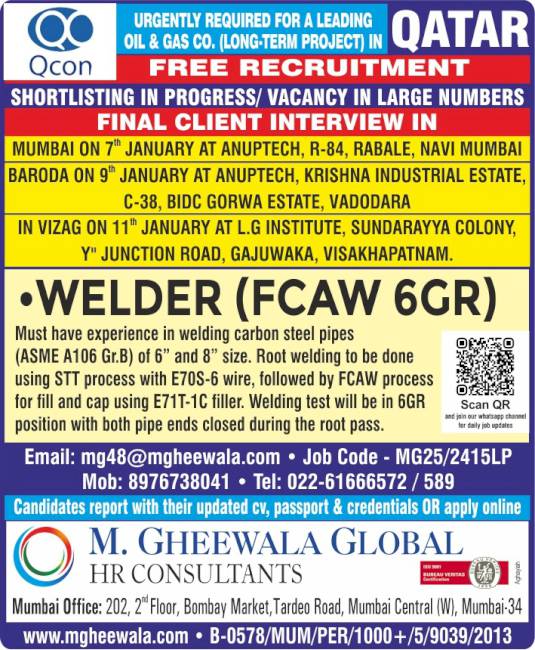 It was a very good experience with M. Gheewala Global during the recruitment process. The arrangements for interviews were great; candidates had good experience and were Gulf returnees, The coordinating staff were respecting us and were supporting our team to get skilled technicians in all trades.