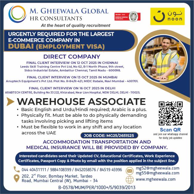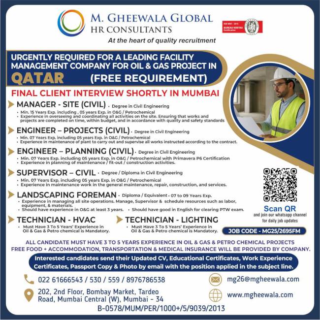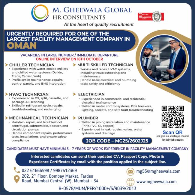 It was a very good experience with M. Gheewala Global during the recruitment process. The arrangements for interviews were great; candidates had good experience and were Gulf returnees, The coordinating staff were respecting us and were supporting our team to get skilled technicians in all trades.