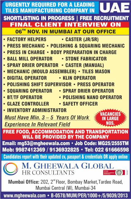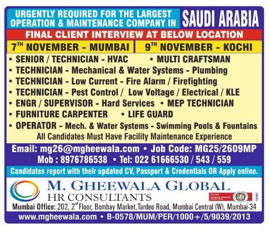 It was a very good experience with M. Gheewala Global during the recruitment process. The arrangements for interviews were great; candidates had good experience and were Gulf returnees, The coordinating staff were respecting us and were supporting our team to get skilled technicians in all trades.